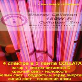 Q.med – 180wt - УФ лампы + лампы «COLLATEN»- уникальный загар для всех типов кожи на всех этапах загара. Q.med – 240wt - коэффициент загара 2,6%. Аккуратно справляется с чувствительной кожей (за счет небольшого коэффициента загара (2,6 из 3,6 возможных), и отлично подходит для тех, кто солнца не боится и хорошо загорает. Q.med – 240wt + вибро Body Wave - Мощные, но гармоничные, возможности солярия Q.med – 240wt, в совокупности с вибротренажером сделают загар более интенсивным и быстрым, значительно сократив время и стоимость загара.